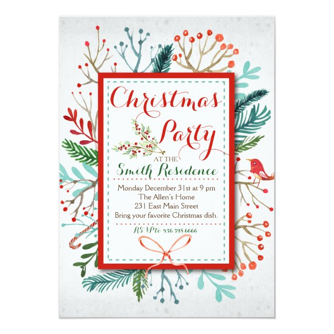 Watercolor Floral Christmas Party Invitation