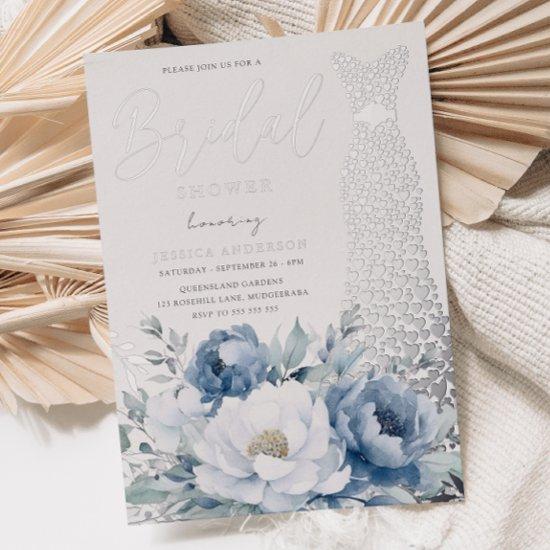 Dusty Blue Floral Silver Foil Dress Bridal Shower Foil Invitation See other invitations in our Niche and Nest Store