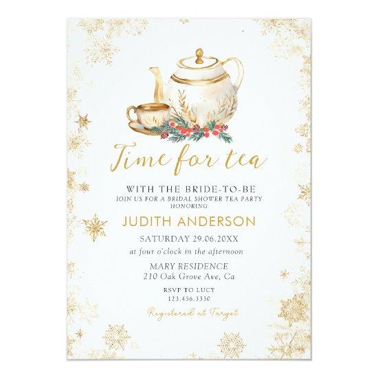EDITABLE Elegant Gold Time For Tea Christmas Bridal Shower Invitation Time For Tea With The Bride To Be Invitation, Afternoon Tea Party Bridal Shower Invitation Wording can be changed into any occasion