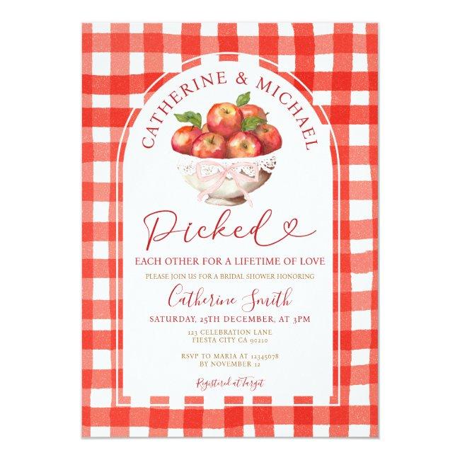 Rustic Red Fall Apple Orchard Bridal Shower Picked Each Other Pink Gingham Invitation