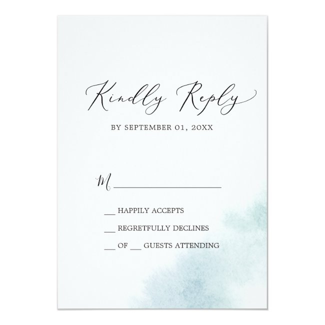 This watercolor wash blue simple RSVP card is perfect for a modern wedding. The simple and classic design features a splash of pastel light blue water color with minimalist elegant style.