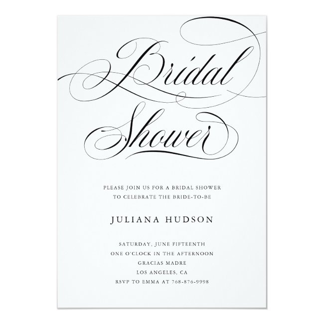 MYRA | This elegant bridal shower invitation card is designed for romantic and/or formal weddings. The black and white traditional wedding colors, the fabulous script calligraphy, and the formal style for the copy text combined make this timeless collection a perfect design for a classic wedding stationery. Also a nice pick for fairytale weddings.