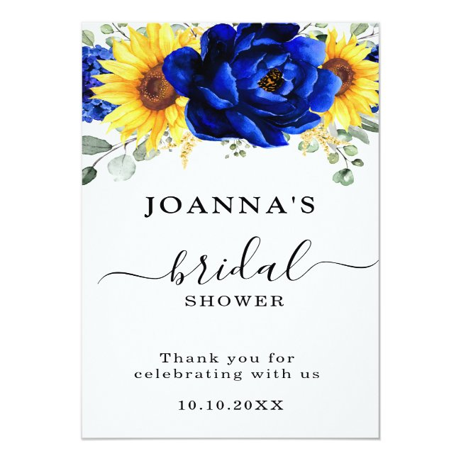 Elegant and modern rustic country bridal shower gift tag features bright yellow sunflower, Royal blue peonies , baby’s breath, gypsophila floral frame / wreath with eucalyptus leaves. Please find more matching designs and variations from my "blissweddingpaperie" store. And feel free to contact me for further customization or matching items.