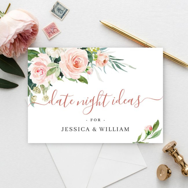 Pink Blush Flowers Bridal Shower Date Night Idea Advice Card.
