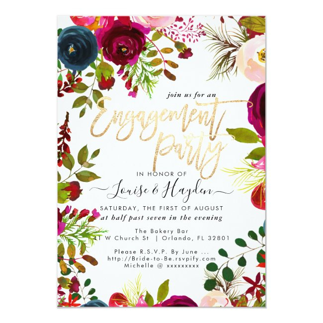 Burgundy, Navy Blue and Blush Pink Watercolor Flowers, Bridal Shower Invitations, accented with a beautiful modern handwritten script font in faux gold and DIY background color. Copyright © 2016-2019 Bombino Designs.