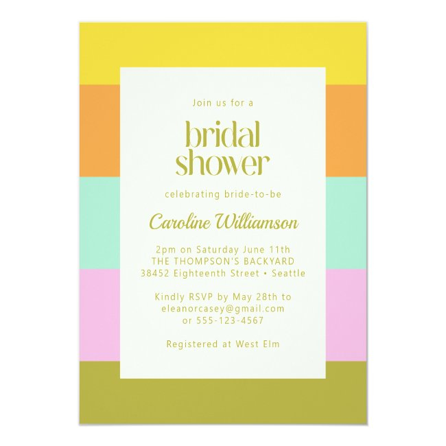 Budget Cute Geometric Stripes Bright Pastels Bridal Shower Invitation